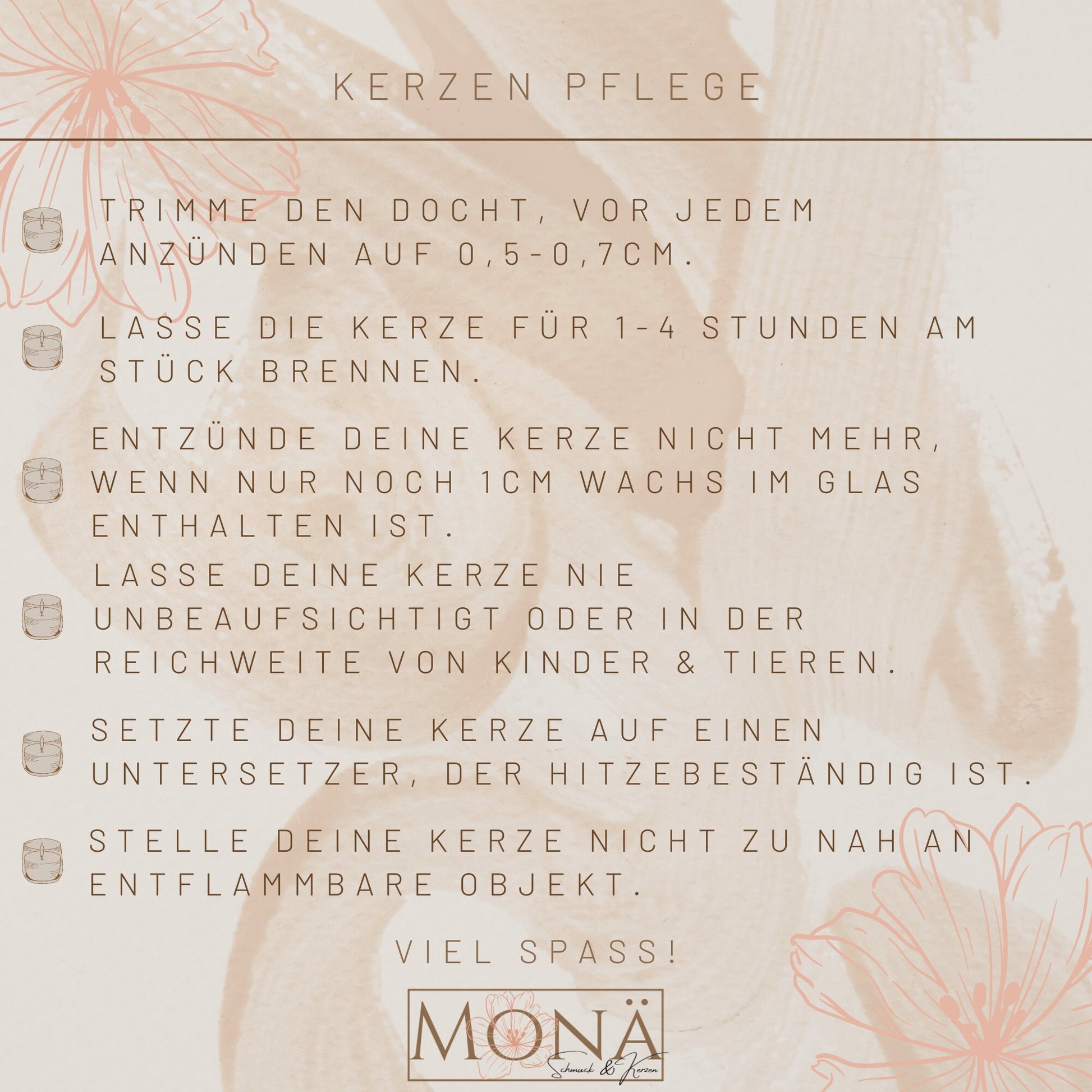 - Kerze nie unbeaufsichtigt lassen!