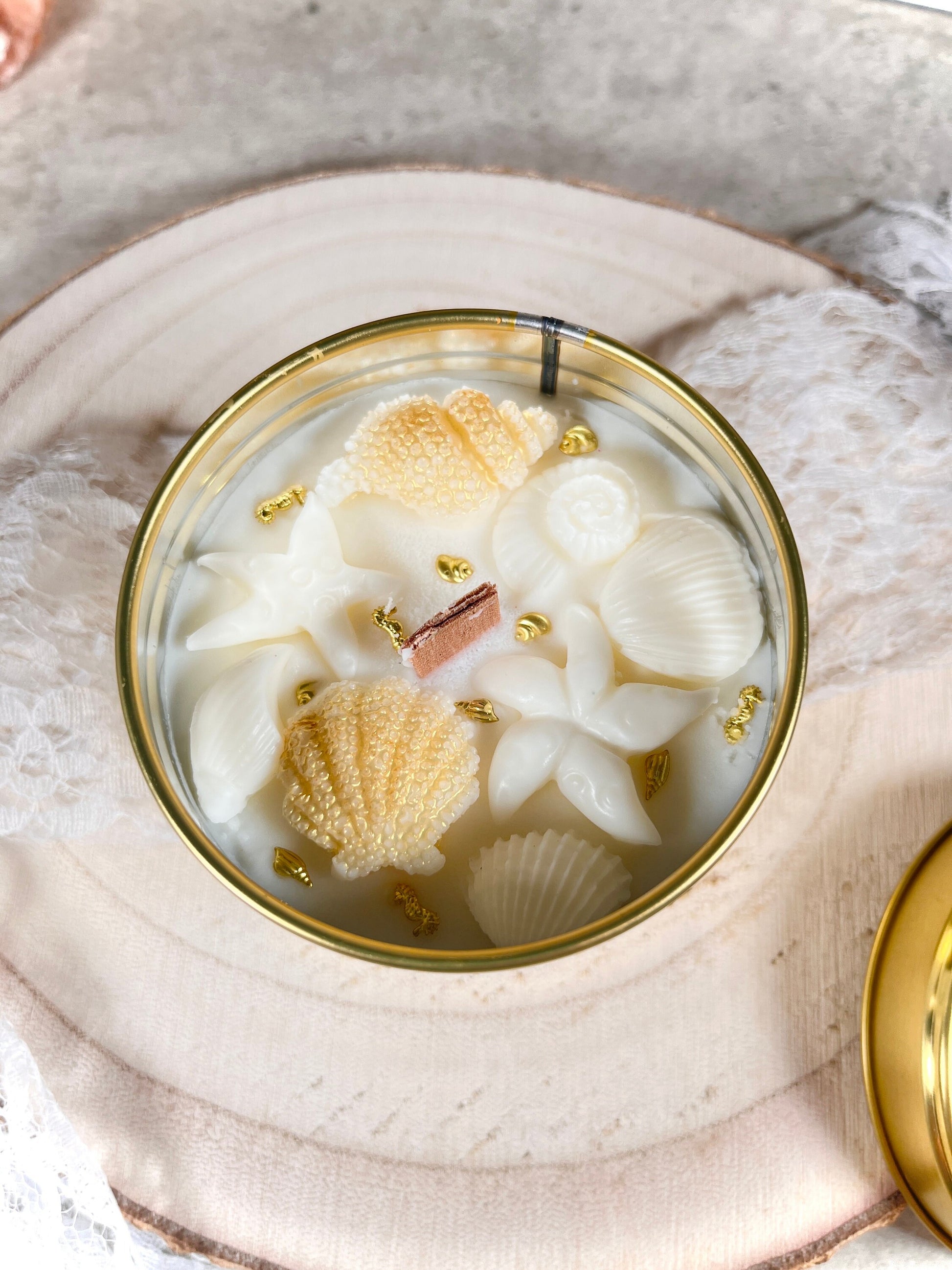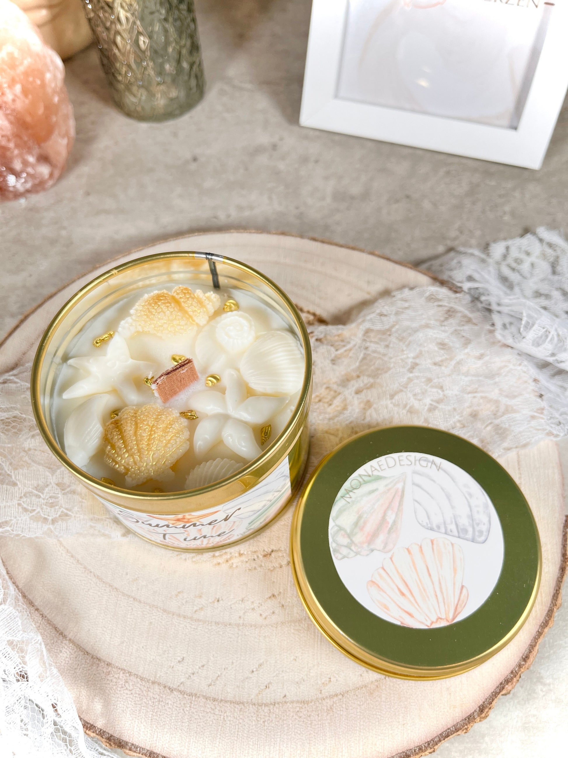 Diese Duftkerze ist handgemacht, sodass das einzelne Produkt im Aussehen oder Farbe leicht von dem hier ausgestellten Foto abweichen kann.